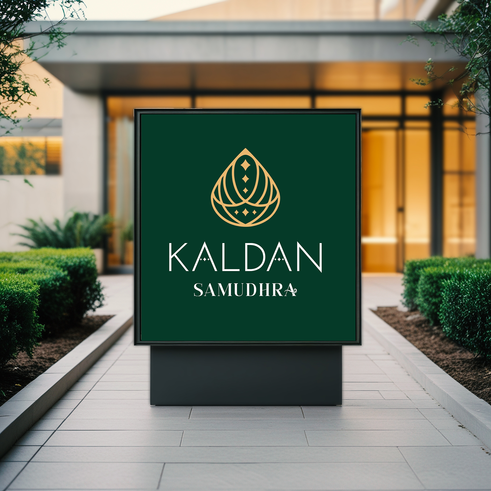 The Kaldan logo features a beautifully designed drop, inspired by a heavenly element—mana from the Gods—symbolising renewal and immortality in paradise. Diamonds placed inside the drop reflect the brand’s dedication to luxury. This logo brings together the richness of eternal paradise and the allure of timeless elegance, promising an everlasting luxury experience.